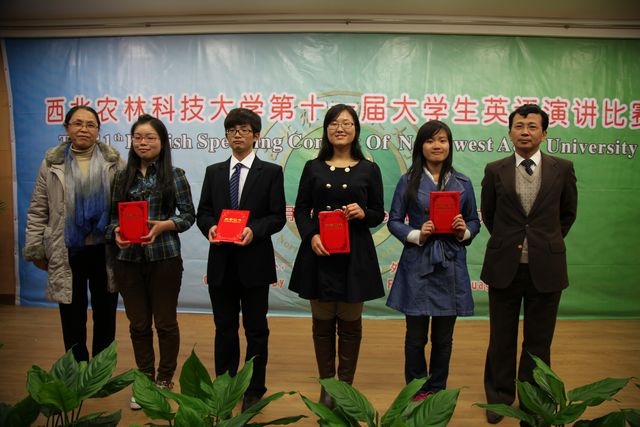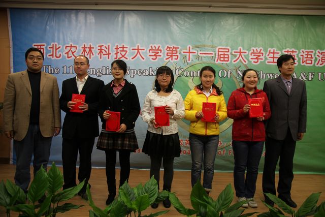 外语系窦琴主任、李安民书记为一等奖获得者颁奖