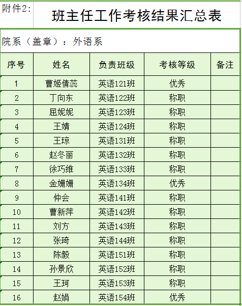 » 外语系2015-2016学年第二学期班主任工作考核结果