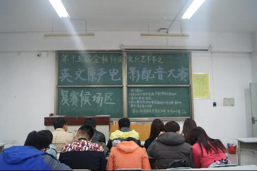 10月31日晚,由团委、员工会、研究生会主办,外语系团工委、员工分会、研究生分会承办的第十五届金秋科技文化艺术节之“重现经典”英文原声电影配音大赛复赛在北校区N8121,N8124教室成功举办。复赛由外语系刘青利、张鹏、曹新萍、刘方、张琦老师担任评委。