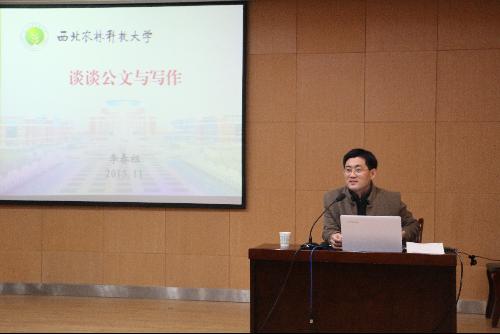 首先,李春祖老师从自身多年从事公文写作的经历入手与现场同学分享了自己对于公文写作的体悟。李老师将公文写作比作喝茶,他谈到,“公文写作的三重境界:第一重,苦似生命;第二重,甜似爱情;第三重,淡如微风。”接着,李老师通过对常见公文的范例的分析,使同学们进一步明晰了公文写作的常用技巧及特点,同时更加深入的理解了公文的重要意义。最后,李老师介绍了常用公文的种类,详细的讲解了各类公文的使用条件、写作步骤、常见格式及用词等方面的知识,加深了同学们对于公文的理解。讲授中,李老师以深入浅出的方式,富有哲理的话语,时尚活泼的网络热词,不断拉近着与学员们之间的距离,全场气氛活跃。