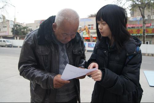 在志愿者们与社区居民在活动室交谈时,有一位已年近九十的李正道爷爷,他来自东北,并曾在河北保定生活三十多年,李爷爷对如今的雾霾天气感慨到:“即使在三十多年前的河北也未曾见过像前几日一样严重的雾霾,以前的杨凌也是蓝天白云,夜晚星光灿烂,但今年出现了严重的雾霾现象,可见如今环境状况实在是令人堪忧。”听完李爷爷的话,志愿者们纷纷表示要呼吁更多的人通过自己的点滴行动减少周围的空气污染,加入到保护环境的队伍中,共同为拥有天蓝、地绿、水静、风和、日丽的杨凌努力!