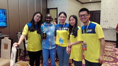 接机、核对名单、就餐、翻译、指引,3天的全程陪伴,英语131班志愿者李亦舒与外籍选手建立了深刻的友谊。在此次比赛的全程,他在接待部为外籍选手服务。为了更好的服务于马拉松赛事,使国际友人能够更加便利的参与赛事,一周之前他便开始进入了工作状态,积极查阅相关资料,了解相关专业术语的翻译方法。从最开始的确定人员信息、订购机票、联系酒店车辆,到后期的赛场熟悉、确定外籍选手行程、接送机等一系列看似简单的工作,却无一不考验着他的细心、耐心、爱心以及英语综合运用能力。