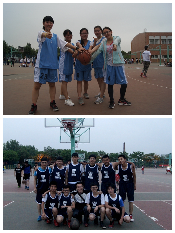 女篮比赛扣人心弦,我系队员凭借勇气与毅力,在强大的对手农公司女篮面前一步一步突破重围,扭转颓势,缩小差距,虽败犹荣。比赛结束后,队员们相互鼓励、交流经验,又为激烈的比赛增添了别样的温情。男篮比赛中,队员们全力以赴,积极跑位,防守、进攻,传球、上篮,曾一度领先对手生命公司7分,现场观众情绪高涨,为队员们摇旗呐喊。虽然被对手反超,可是每个队员并没有因此影响了比赛情绪,队员之间拍拍肩膀相互安慰一下接着再战。我系篮球队队长兰晨磊同学说:“篮球赛是团体赛,只有队员配合默契,不过分强调自己,才能打出漂亮仗。”苗高扬同学谈到:“友谊第一,比赛第二。篮球运动不仅锻炼了同学们的体魄,还加强了系内同学的凝聚力,更密切了各院系同学之间的联系,增进了彼此之间的友谊。”