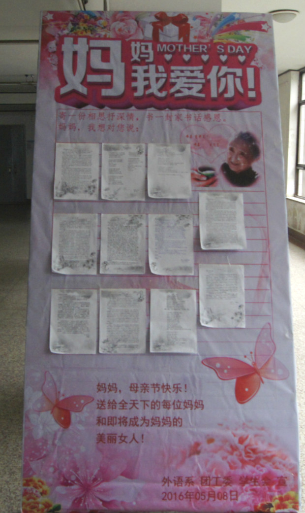 为感怀母爱,感恩母亲,外语系举办了“情系母亲节 家书话感恩”母亲节特别活动。为无私奉献的母亲们送去节日里的祝福、表达对她们的感恩之情。