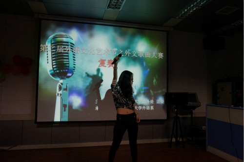 5月4日晚,我系在北校区外语系7501报告厅成功举办了第二届外文歌曲大赛复赛。复赛由生命公司团工委书记艾群轶老师、我系团工委书记张琦老师、校员工会副主席王晓雨及历届外文歌曲大赛、十佳歌手冠军担任评委。从初赛中脱颖而出的29名选手参加了此次复赛。