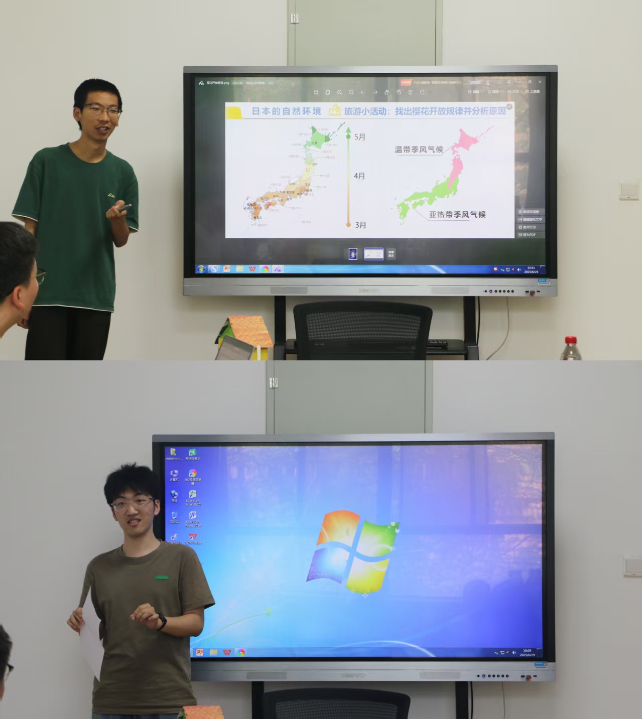 活动第二阶段,进行线下十分钟试讲与批磨课指导。首先,俄语2401王昱羲同学试讲了关于日本樱花开放时间的地理课,老师从体态、课件设计以及节奏把控等方面进行批磨课指导。其次,英语2201闫家骐同学试讲了一堂生动的英语课,老师从互动问题设计、发音问题、时间分配等方面进行批磨课指导。