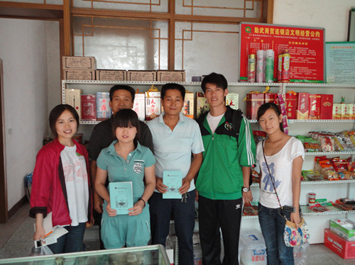 此次调研活动有别于以往调研活动可以用“3个最”形容。一是队员们会用最短的时间(5天)将调研范围扩大到8个村以上;二是队员们会最大限度收集全包括村委会和公司等机构在内的有关资料;三是队员们会步行到最远距离8公里远以上的贫困山村落实各项活动。虽然在调研过程中一直下着雨,但却丝毫影响不了队员们切实调研的干劲。裤腿湿了,高高地挽上继续前行;鞋子泥了,浑然不顾;肚子饿了,喝几口山泉,冒雨前进;脚磨破了,挑开血泡,昂首挺胸;语言沟通障碍了,耐心诚恳细致地询问。队员们还用蹩脚的当地方言与当地群众火热地打成了一片,赢得了村民一致好评,并纷纷放下手中的农活热情地带路,久久不肯离去。