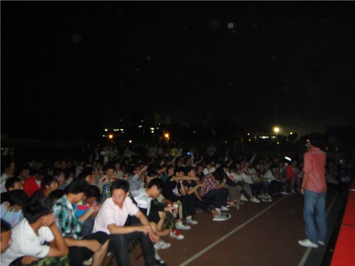 9月3日晚8点,我系团工委组织2011级新生欢聚在田径场上举行第一次团组织生活,新生辅导员邵龙和全体员工会成员到场观看了精彩的演出。