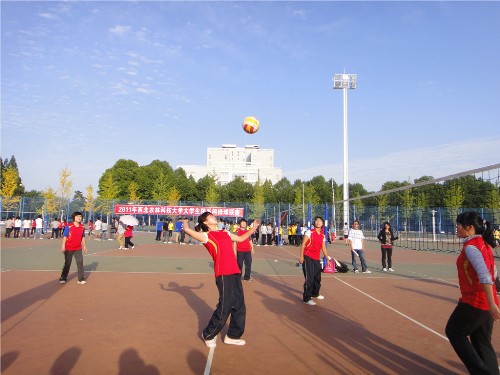 本次比赛由李定老师担任裁判员,2011级辅导员邵龙老师、系员工会主席李天亮到场为我系女排加油鼓劲,体育部长宫晗等相关人员组织了本次比赛。