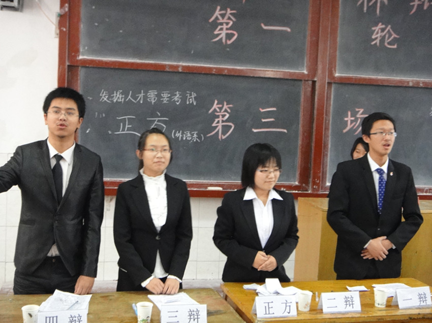 10月15日下午2:30,我系辩论队与资环公司辩论队在四号楼323教室激烈开战。两院系2011级辅导员与员工会主席等成员出席了此次比赛。