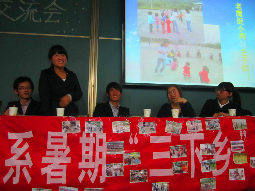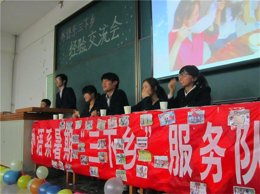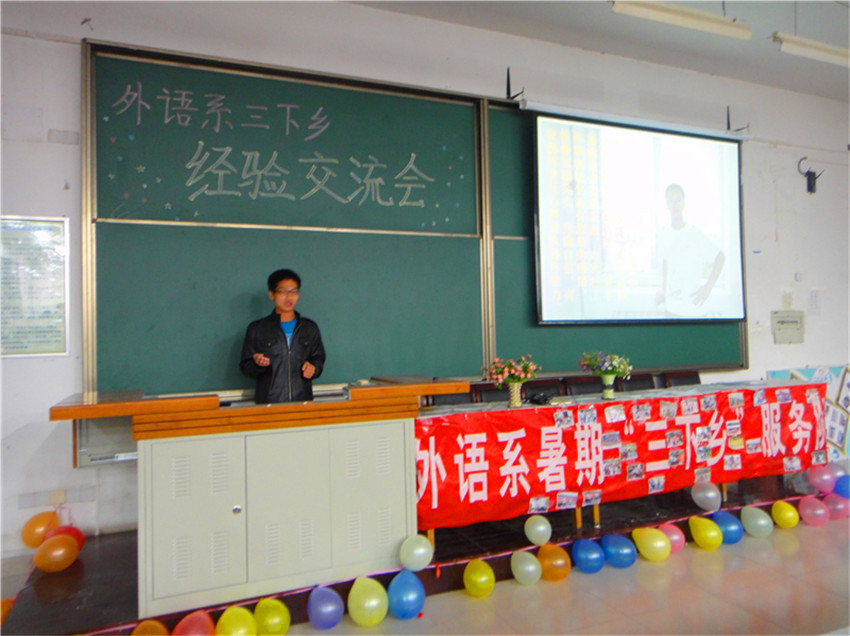 10月23日晚7:00,外语系2010-2011学年度暑期“三下乡”、村主任助理、世园会志愿者代表成员于8号楼8T01教室为2011级全体员工作经验交流及成果汇报。校团委实践部副部长和水建公司、机电公司、生命公司、农公司等兄弟院系社会实践部部长一行出席了本次会议。
