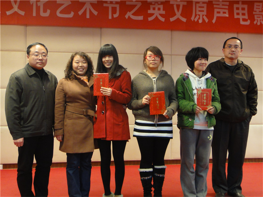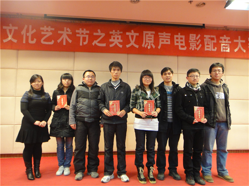 11月27日晚7:00,由校团委主办、外语系承办的第十一届金秋文化艺术节之英文原声电影配音大赛(决赛)在南校区国际交流中心207会议室隆重举行。系党委副书记王小平、外语系全体专兼职辅导员、林公司团工委书记杨士同出席了本次比赛。我系教授李丽霞、闫仙慧、张伟、王义琦、巩存芳及校团委社团管理部部长杨彦宝6位老师应邀担任此次比赛评委。来自全校各院系的17支队伍参加了决赛,经过激烈角逐,我系代表队参赛作品《里约大冒险》获得一等奖。