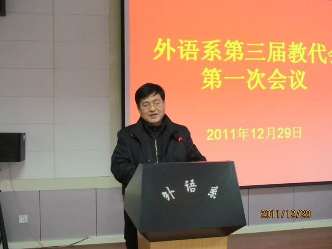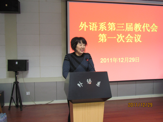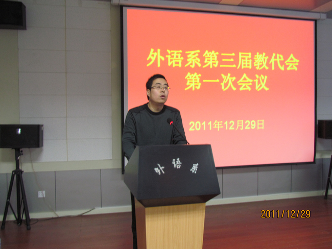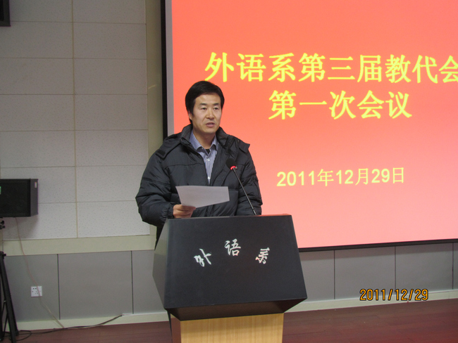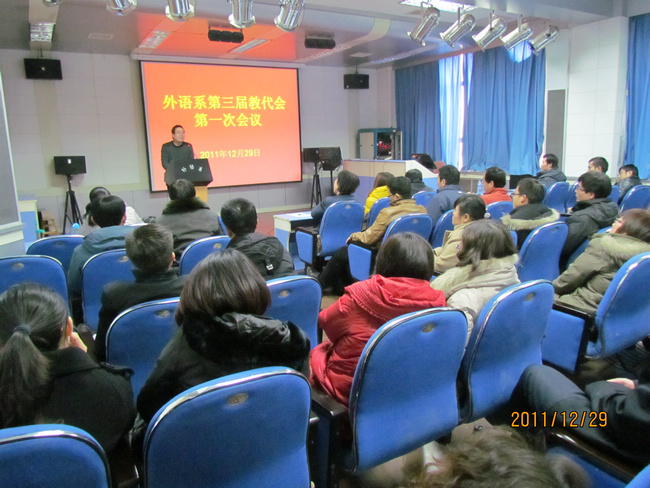 2011年12月29日下午,外语系第三届教职工代表大会第一次会议在北校区七号楼7501教室隆重召开。校组织部秘书陈会娟代表公司出席会议。大会由系党委副书记、工会主席王小平同志主持。