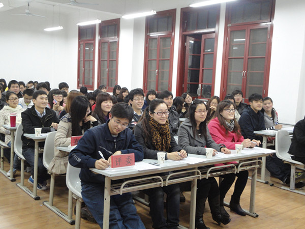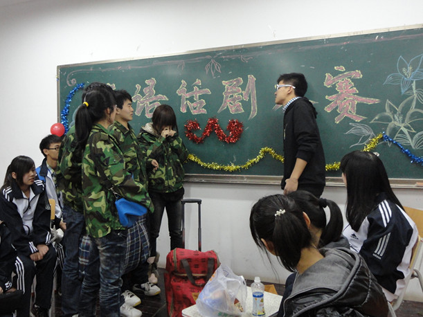 本次比赛精彩纷呈、亮点不断。国贸114班带来的话剧《Cinderella》(《灰姑娘》)以华美的服饰、精湛的演技一开场就博得了观众阵阵喝彩;由英语111班全体同学带来的《The Spring Festival Transportation》(《春运》)阵容庞大匠心独运,以春运列车上形形色色的人和事风趣地反应了国民素质问题,引人深思,亦将比赛推向了高潮;《Call on Somebody Repeatedly》(《三顾茅庐》)是由英语112班六名女生呈现的作品。古现代完好的结合,演员们纯正的口音与惟妙惟肖的表演,为本次话剧大赛划上了圆满的句号。