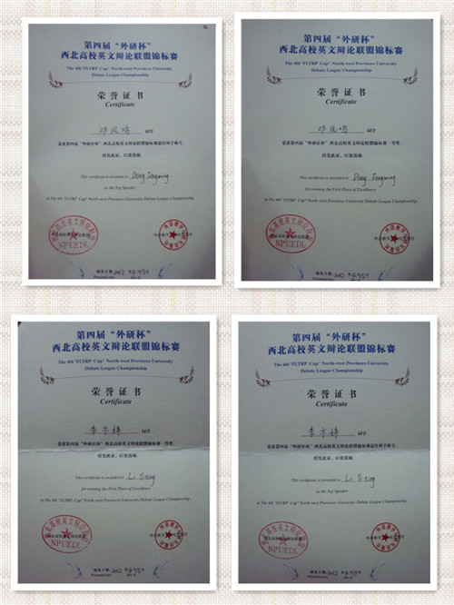 4月14-15日,第四届西北高校英文国际辩论联盟锦标赛在西安电子科技大学隆重举行,我系邓凤鸣、李亦婷等八名同学代表公司参赛,在西北赛区17所高校的90多支英文辩论队伍中脱颖而出,取得优秀成绩。我系邓凤鸣、李亦婷同学摘得一等奖桂冠,并分别获得“最佳辩手”荣誉称号。