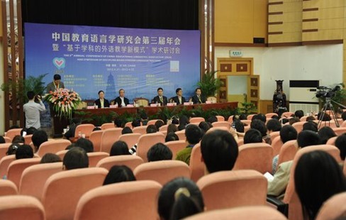 会上,多位国内知名语言教育学专家学者作了发言。中国外语教育研究中心研究员、北京外国语大学外国语言研究所刘润清教授做了题为《用内容教学带动语言教学》的发言,论述了在语言教学中从技能教学向内容教学转向的重要性;上海外国语大学博士生导师束定芳教授介绍宁波诺丁汉大学英语教学模式和德国大学英语学位课程,并对比提出了中国大学英语教学模式改革的根本出路;复旦大学外国语言文学公司蔡基刚教授做了《以学科为依托的外语教学几个重要特征》的会议发言。上海交通大学博士生导师俞理明、中国海洋大学外国语公司经理杨连瑞、长安大学外国语公司经理徐玉臣等专家学者也先后发言。