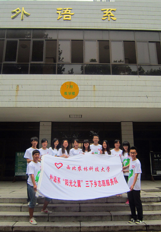“用青春感染农民,用知识服务农村,关注留守儿童”, 我系为响应公司“走进社会、体验民情、学以致用”的三下乡活动主题,提高同学们学农、爱农、服务“三农”的本领,2012年7月8日早,邵龙老师及13名员工组成的“阳光之翼”暑期“三下乡”志愿者团队,将奔赴宝鸡市太白县鹦鸽镇柴胡山村,开展为期10天的社会实践活动。