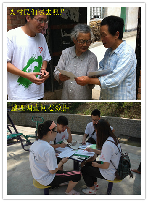 上午,“阳光之翼”两个小队对近两日进行的走访问卷调查结果进行了数据统计、资料整理和图表制作。这些清晰的记录,反应出了农村区域环境现状和村中中小员工的教育及英语教学情况。同时,为答谢前日村民在山中的热情接待,队员们选出部分活动照片冲洗塑封,于下午再次上山为村民送去,村民们十分惊喜,对“阳光之翼”的真诚关怀赞不绝口。