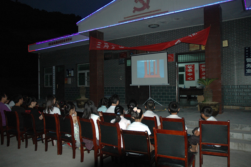 傍晚,“阳光之翼”又用投影仪及白幕在村委会广场为村民和孩子们送上了部部精彩的科普电影,大家看得津津有味,“阳光之翼”热情、真诚的服务也随着电影情节的进展而深入人心。