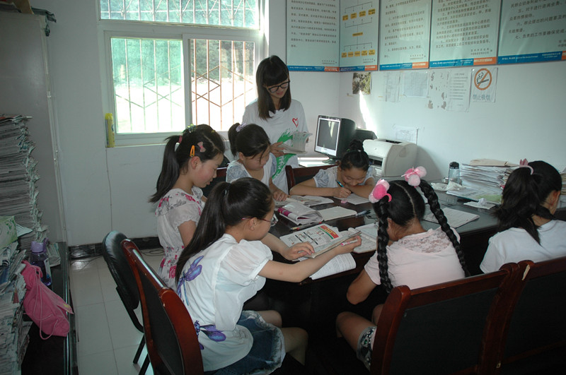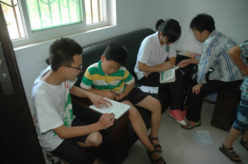 “阳光之翼”全体队员与当地50余名各年级小员工于早上8点半准时在柴胡山村委会活动室集合,开始一天的支教活动。12名队员分工合作,课程涉及一至六年级的语文、数学、英语、历史等,同时解答员工暑假作业中的疑难问题。孩子们十分高兴、热情,活动室呈现出一派其乐融融的场景。