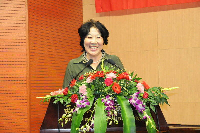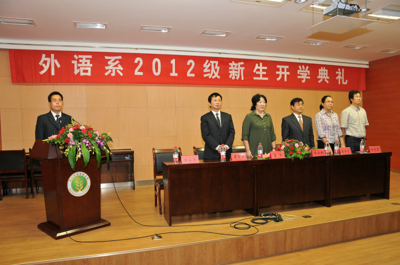 在庄严的国歌声中,典礼正式开始。系主任窦琴首先代表外语系致辞。她对如愿考入外语系的2012级新生表示热烈祝贺,并欢迎同学们在此开启崭新的学习、工作与生活。同时,她回顾了公司与外语系发展的历史与成就,希望同学们借助自身奋斗与外语系指导,成长为社会发展的中坚力量