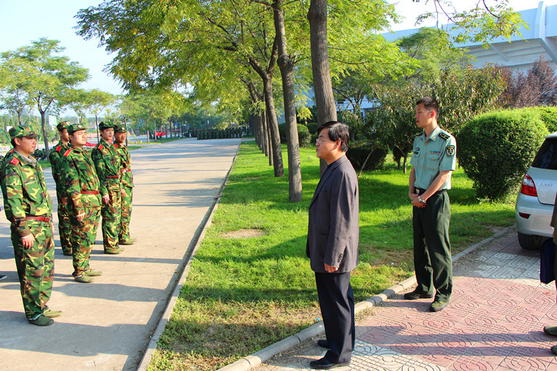 为鼓舞新生军训斗志,9月19日上午,外语系党委书记李安民在辅导员曹姬倩蕊的陪同下来到军训场地,看望正在军训的2012级新生并慰问承训教官。