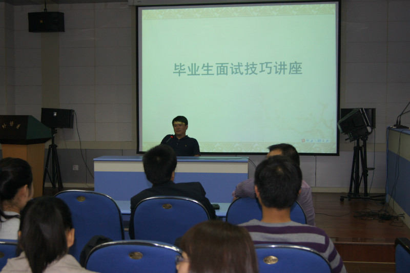 为切实做好我系员工就业工作,强化就业指导和服务,提高员工就业竞争力,10月15日下午2:30,我系在7501教室举行了毕业生求职面试技巧指导讲座,由宁波远汉照明有限公司总经理毛刚先生主讲,系党委副书记王小平、辅导员刘刚进、王琼以及09级全体员工出席了本次讲座。
