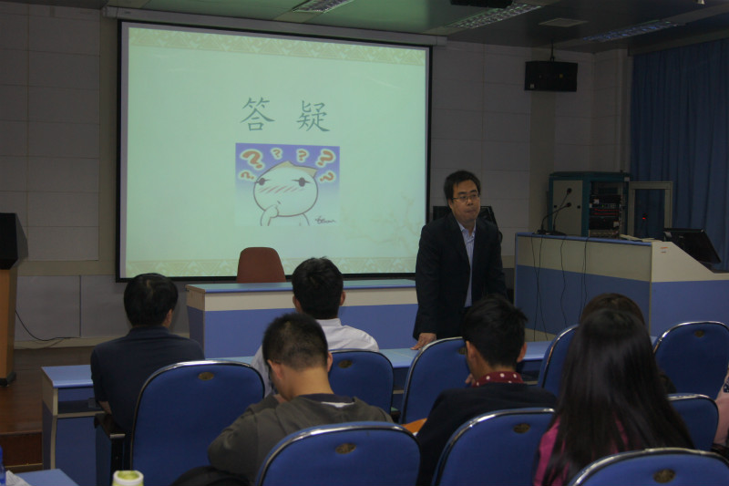 接着,毛刚经理针对目前的招聘就业形式,介绍了应聘的技巧与策略,分享了自己成功的经验,同时他结合自身例子强调理论与实践相结合的重要性,希望同学们在大学期间多参加社会实践活动。针对大家提出的问题,毛经理生动形象地逐个为同学们解答疑难,并特别强调了在就业过程中自我定位和良好心态的重要性。