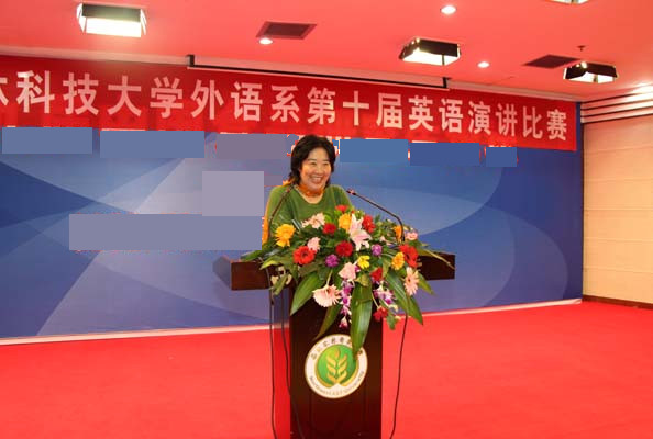 2012年10月24日晚,外语系第十届英语演讲大赛在南校区国际交流中心208会议室隆重举行。系主任窦琴、副主任田志强、系党委副书记王小平出席了本次比赛,200多名员工到场观看了比赛。