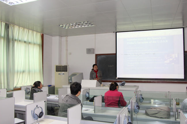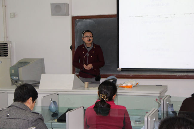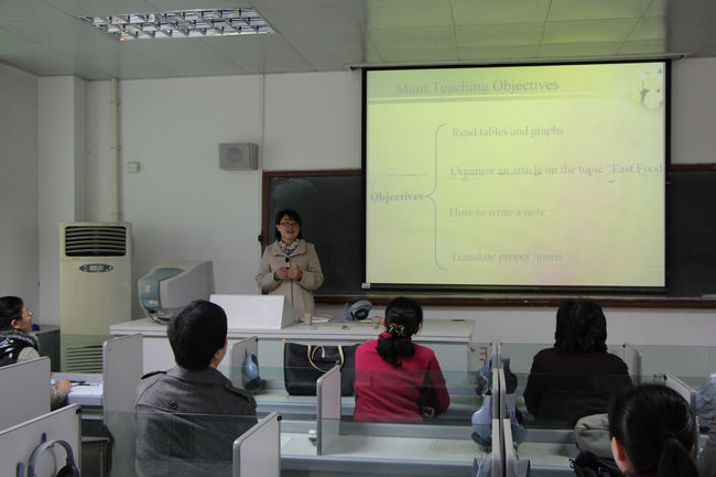 为了加强对青年教师教学能力的培养,鼓励青年教师探索教学艺术,不断提高教学水平,根据公司“关于举办2012年度青年教师讲课比赛的通知”精神,外语系于10月30日在北校区7404举办了2012年度青年教师讲课比赛复赛。外语系窦琴教授、董会庆教授、李丽霞教授、田志强副教授、宋岳礼副教授、贺新全副教授担任评委,部分无课教师观摩了比赛。