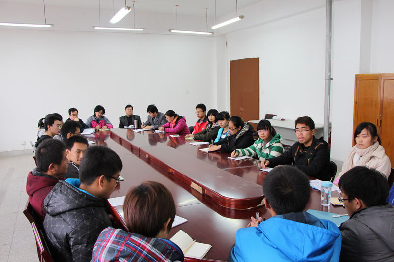 为全面了解和掌握本学期开学以来公司2012级大学英语教学运行的整体状况,外语系于11月27日下午4点 在北校区7号楼三层会议室召开2012级大学英语教学师生交流会。外语系副主任田志强主持会议,系主任窦琴、党委书记李安民、副书记王小平、大学英语第一教研室主任王宝平、秘书柴洁出席。农公司、园艺公司、水建公司、葡萄酒公司、创新公司、人文公司、植保公司、食品公司、动科公司、理公司、林公司、信息公司、资环公司、生命公司2012级员工代表参加了本次座谈会。