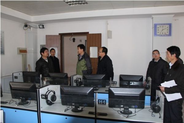 在听取了系副主任田志强对我系实验室实验室环境及安全等工作进行了整体介绍、语言教学实验中心主任王昕的具体工作汇报之后,胡处长一行对语言教学实验中心实地考察,并对我系实验室工作进行了实验人员带病坚持工作表示赞赏并对实验室对全校员工免费对外开放工作做出高度评价,认为这项工作对提高设备共享率,充分发挥设备潜力;提高公司员工英语视听说能力和四、六级英语过级率有着极大的促进作用,同时对下一步实验室工作的开展提出了建设性的指导意见。