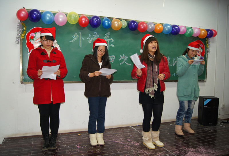 本次团组织生活以“欢庆圣诞节”为题,在温暖和谐的歌曲《相亲相爱的一家人》中正式拉开帷幕。随着主持人的报幕,我系多才多艺的同学们相继为大家献上歌曲、小品、相声、舞蹈、诗歌朗诵等形式多样、内容生动有趣的节目,展示了自己的风采。