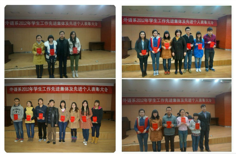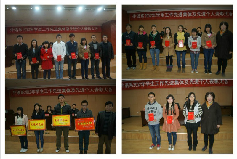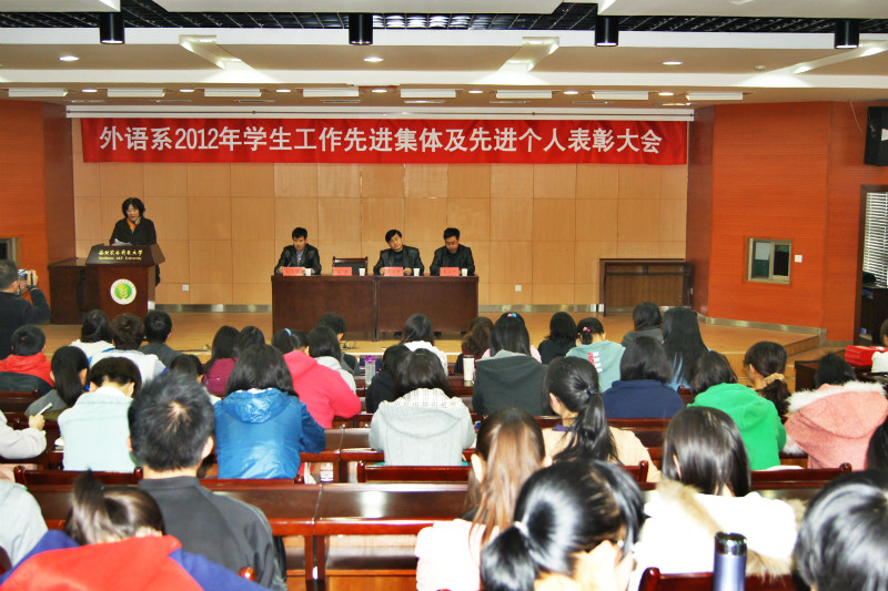 3月6日下午,我系2012年员工工作总结暨员工先进集体、先进个人表彰大会在北秀山南报告厅举行。系党委书记李安民、系主任窦琴、系党委副书记王小平出席会议。外语系副主任田志强主持大会。全体辅导员、班主任、受表彰的先进集体、先进个人代表和员工代表共100余人参加了表彰大会。