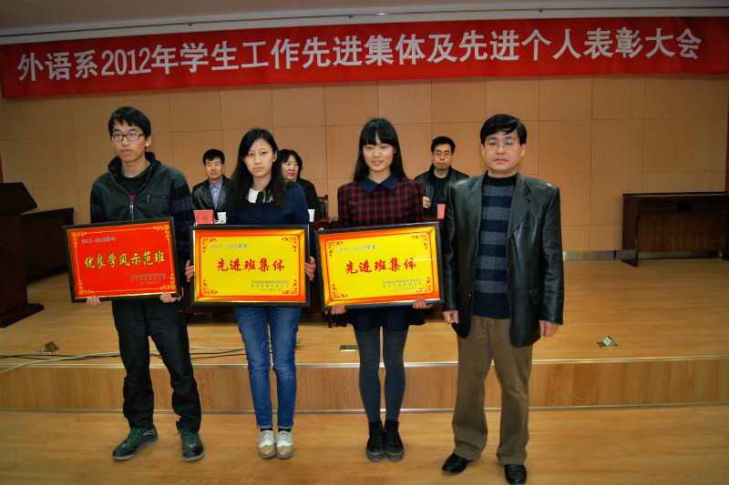 系主任窦琴宣读了表彰决定,她对受表彰的先进集体和个人表示了祝贺。2011级优秀员工张兆卿同学代表先进个人在会上作了发言。随后,与会领导为获奖集体及个人颁奖,并与他们合影留念。