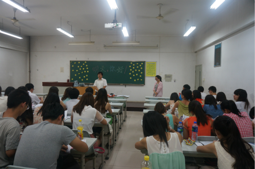 6月17日下午,我系在N8114教室开展毕业生团组织生活,本次团组织生活由辅导员王琼主持,英专教研室杨晓峰老师、巩存芳老师、刘彩迎老师、张鹏老师及2014届全体毕业生共同参加了本次活动。