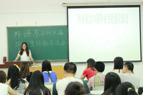 6月18日下午在N8112教室我系举办了2014届毕业生经验交流会,本次交流会共有四位2014届应届毕业生参加,她们向大一大二大三的同学分享了她们的青春与大学。