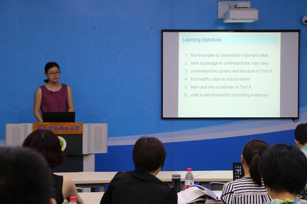 在两天的集体备课研讨活动中,全体教师们以小组的形式依次呈现了自己所做的读写译和视听说两门课程的教学课件,并逐一进行了热烈的讨论。在研讨中,教师们畅所欲言,集思广益,从不同角度对完成的课件进行了审视,并提出了非常好的改进意见。通过这次研讨,不仅做到博采众长,实现了教学资源资源共享,而且极大地促进了全体教师的工作积极性,加强了教师之间的互动和交流。