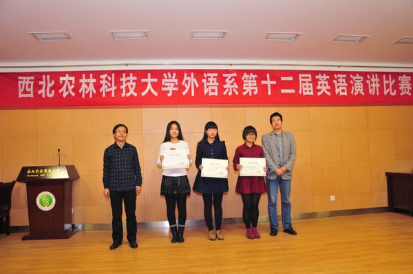 本次比赛采用2014年“外研社杯”全国英语演讲大赛的形式,即分为定题演讲、即兴演讲和回答问题3个环节。定题演讲的的题目是“change the unchangable”。在两个多小时的角逐中,13名选手在台上尽情挥洒才华,用流利的英语阐述自己的观点,他们标准的语音、流利的表达、敏捷的思维、睿智的问答赢得了在场观众的阵阵掌声。经过激烈角逐,英语124班符果荣获特等奖,英语121班颜欢、英语132班刘嘉怡荣获一等奖,英语122班潘雨清、李晓芸、英语143班罗美琪荣获二等奖,英语121班吴金婵、英语134班杨烁、英语123班郑小粤、英语132班胡海桐、段翔宇、英语121班吴金婵、英语142班贺琳荣获三等奖。