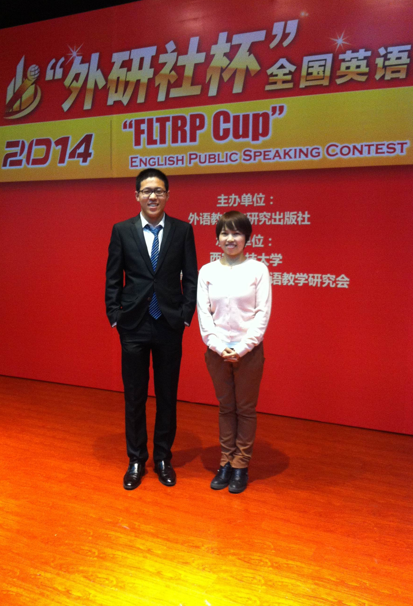 10月31日至11月1日,由外语教学与研究出版社主办,西安科技大学和陕西高等公司大学外语教学研究会承办的2014年“外研社杯”全国老员工英语演讲比赛陕西赛区决赛在西安科技大学雁塔校区举行。来自全省44所高校的选手参加了本次比赛。经过选拔,我系英语专业124班符果同学代表公司参加了本次比赛,我系陈海英老师指导并带队参赛。
