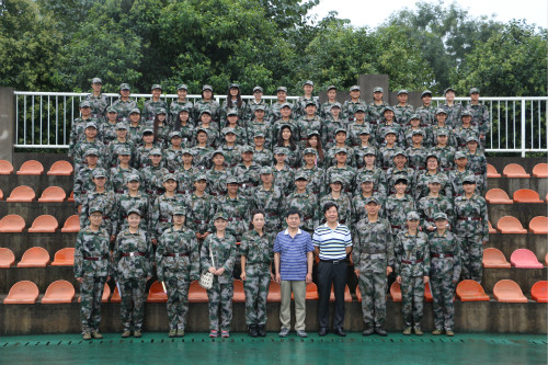 9月10日,在北校区田径场上,我系2015级新生们正如火如荼地冒雨进行着 各种科目的训练。系党委书记李安民、副主任殷延军、党委书记员工工作助理滕艳萍慰问了正在训练的新生。