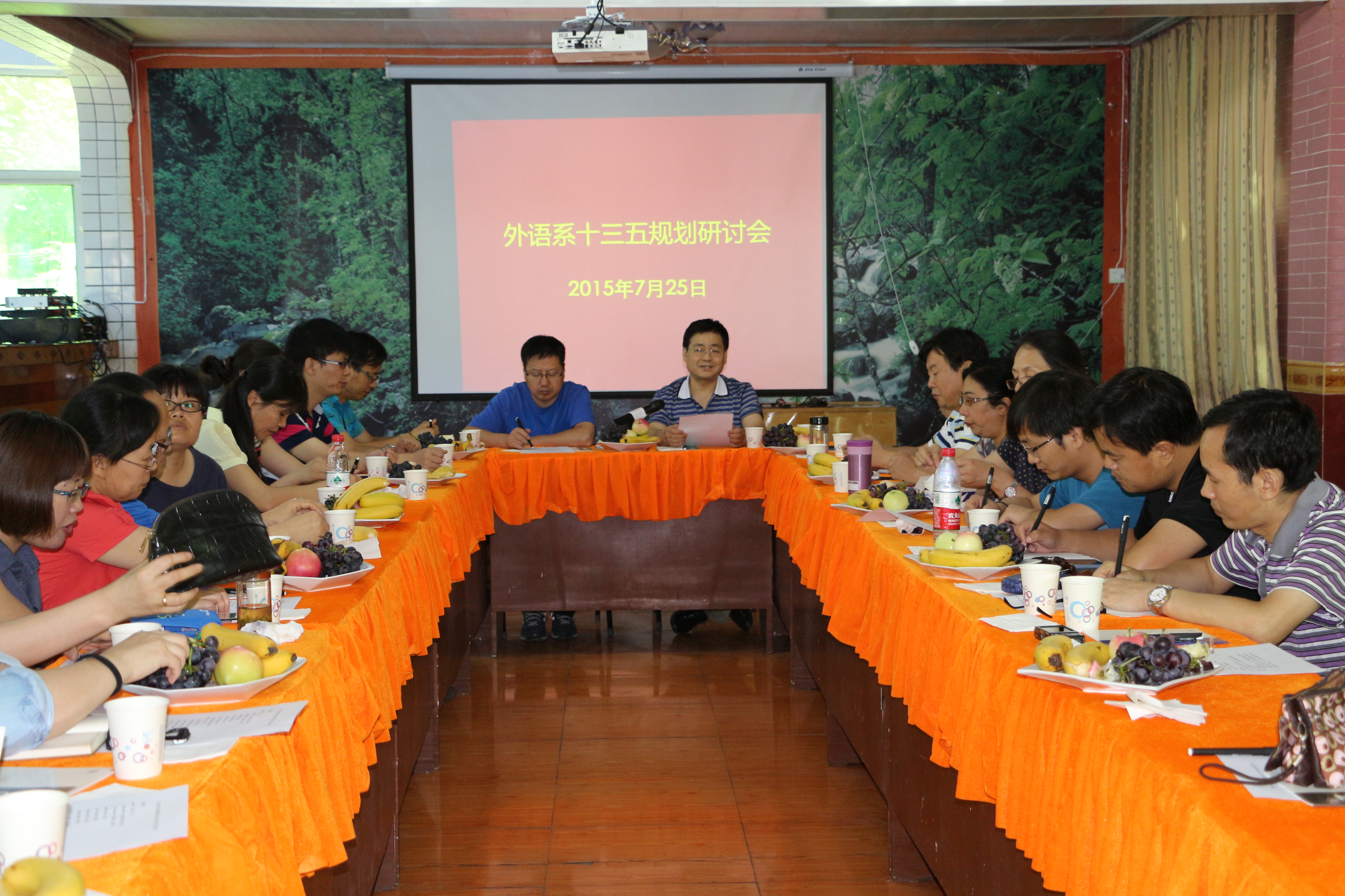 为收官“十二五”、谋局“十三五”,自6月开始,外语系通过深入细致的规划起草,经过多次党政联席会议分工负责、征求意见和修订完善,于7月中旬初步形成了外语系“十三五”规划讨论稿。讨论稿对外语系“十二五”期间的主要成效、存在的困难和不足进行了梳理总结、对“十三五”期间事业发展面临的形势进行了系统分析、对发展目标与主要任务进行了科学定位、对今后五年的重点工作进行了规划设计,并从人才培养、专业建设、团队建设与研究生教育、科学研究、团队队伍建设、国际合作与交流方面提出了具体的量化指标。
