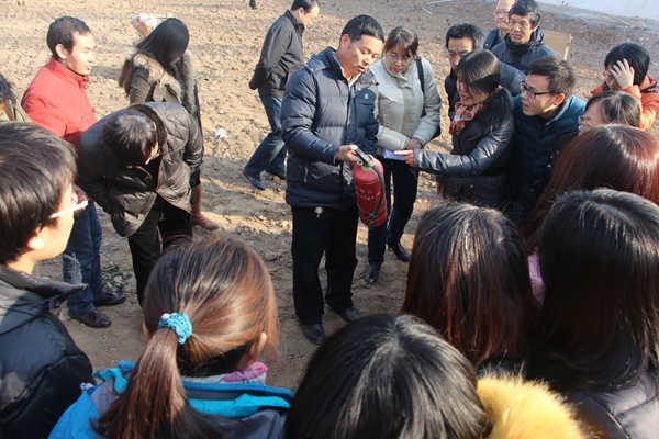 报告会后,教职工前往在东区附近的空地,在保卫处工作人员的指导下进行了灭火演练。保卫处工作人员就灭火器的使用方法进行讲解并当场作灭火演示。大家积极热情地参与演练之中,每一位教职工都亲自拿灭火器进行灭火,并就灭火器的使用方法和心得进行交流。