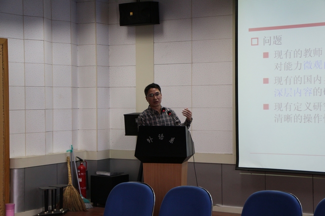 报告会上,陈坚林教授一行分别就他们研究的课题向与会教师作了题为“高校英语教师自主能力研究”、“信息技术环境下员工生态位研究”、“外语教学研究方法特征研究”的专题报告。报告厘定了教师自主和教学自主的概念区分,呈现了教学自主研究的实证研究步骤流程;报告也将“生态学”这一理念引入到大学英语教学中,探索大学英语课程生态系统演化和发展的基本规律,从理论和实践方面帮助大学英语员工找到理想的生态位。报告同时就外语教学研究方法的一些认识误区、研究方法的国内外发展趋势、各种研究方法之间的层级关系、常见研究方法的特征等方面分析作。参加报告的我系系师生就自已所关注的问题与陈教授一行进行了积极交流和热烈的探讨。