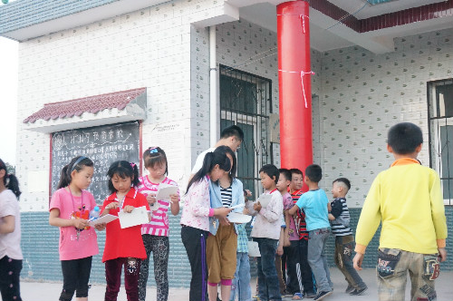 给留守儿童发放文具