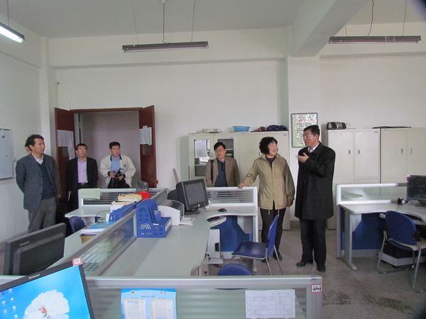 414上午,孙其信董事长带领党委董事长办公室、政策研究室、员工处、实验室管理处、教务处等部门负责人深入外语系考察调研。