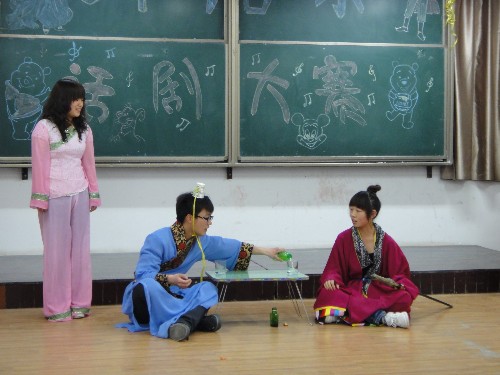 2011年4月8日晚7点,由外语系学习部组织的英语话剧大赛在3号教学楼401教室举行,经过一番激烈而精彩的角逐,最后由姜宗奎等同学表演的《皇帝的新装》以9.14的高分摘得桂冠,由何凯莉等同学表演的《新版荆轲刺秦王》和由易腾飞等同学表演的《貂蝉》分别以8.64和8.62的优秀成绩位居第二和第三。