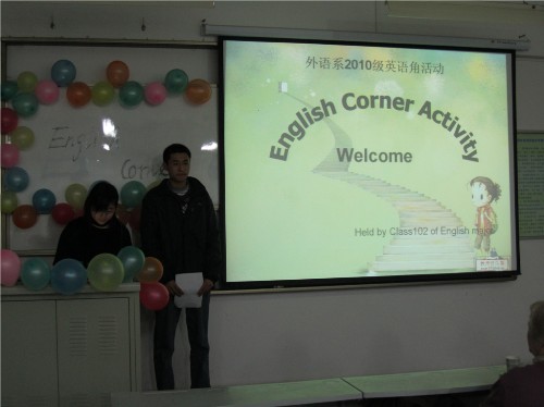 为提高外语系英语专业新生的英语口语水平,开阔员工视野,拓宽知识面,增强英语专业员工之间的交流和沟通。3月11日晚7:30,外语系英语角在8208教室盛情开幕,本次活动由英语102班筹办。出席嘉宾有外籍教师Bobby、Linda以及08级优秀员工代表。外语系各年级员工踊跃参加此次活动。