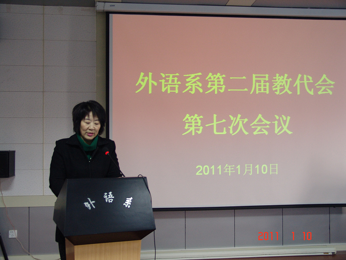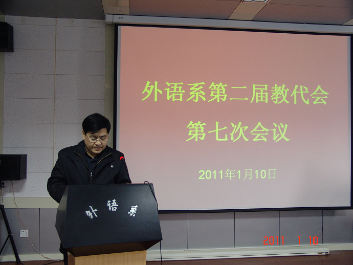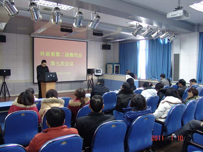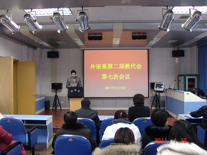2011年1月10日下午,外语系第二届教职工代表大会第七次会议在北校区七号楼7501教室隆重召开。校纪检委秘书高永强代表公司出席会议。大会由系党委副书记王小平同志主持。