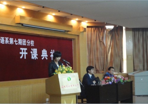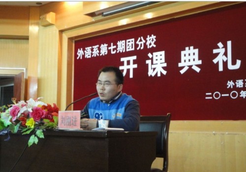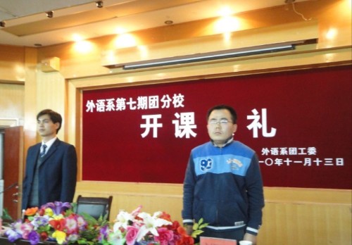 2010年11月13日,由外语系团工委主办的我系第七期团分校的开课典礼于下午四点在七号楼二楼举行。开课典礼由外语系10级辅导员陈洪老师主持,到场嘉宾有外语系团工委书记刘刚进老师,以及各兄弟院系团支部的干部。